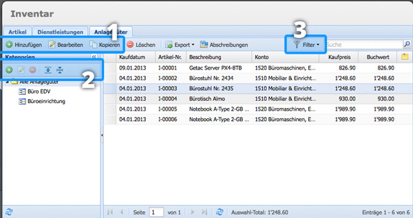 Mit den Kategorien gliedern Sie Ihre Anlagegüter.