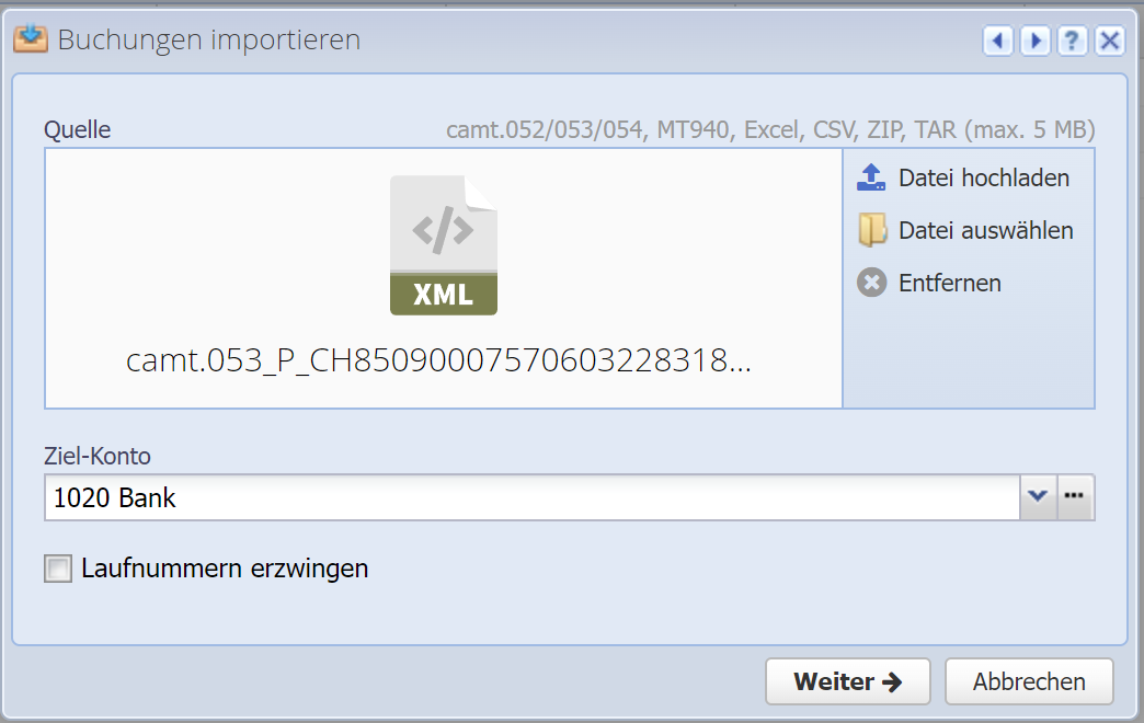 Hinweis: Wenn Buchungen in einer vorherigen Import-Sitzung bereits importiert wurden und nun nochmals vorkommen, werden diese bereits ignoriert. Sie können diese trotzdem importieren, indem Sie sie wiederherstellen - auf eigene Gefahr.