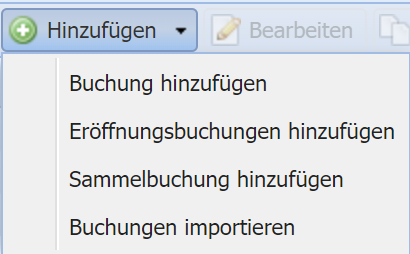 Über "Buchungen importieren" im Hinzufügen-Button des Journals können Sie Bankbewegungen / Transaktionen aus Ihrem E-Banking hochladen und importieren.