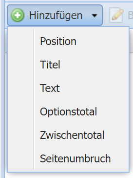 Hiermit erstellen Sie eine neue Position. Wenn Sie auf die Pfeiltaste daneben klicken, eröffnet sich folgendes Menü: