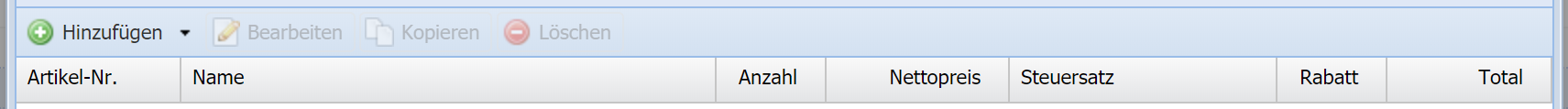 Geben Sie hier Artikel und Dienstleistungen als Positionen ein.