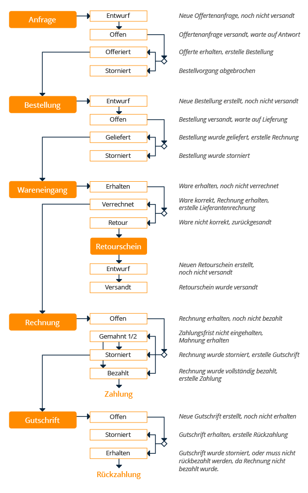 Der vorkonfigurierte Standard-Workflow für Einkauf sieht folgendermassen aus: