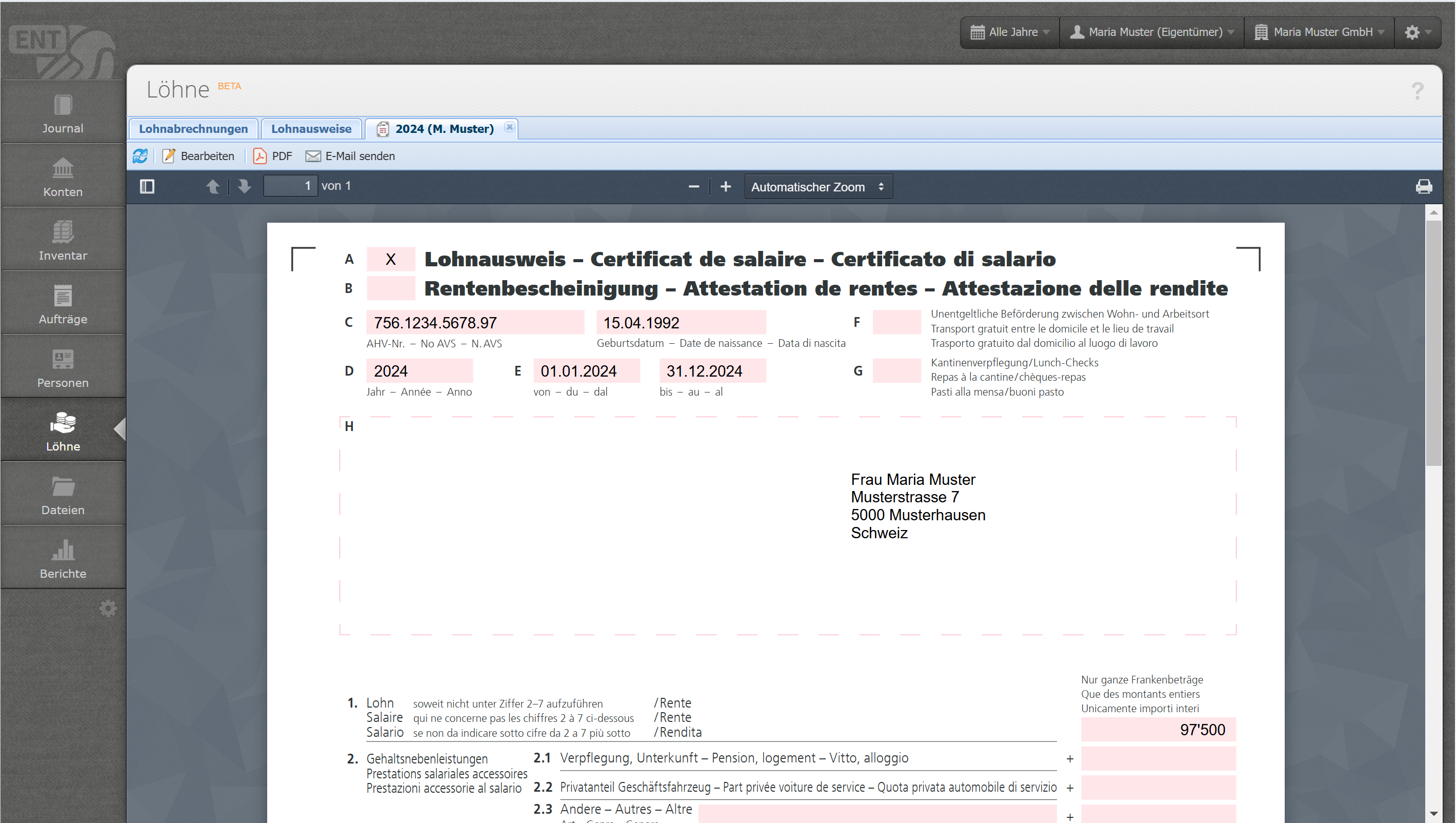 Dies ist die Detailansicht des Lohnausweises (PDF-Vorschau).