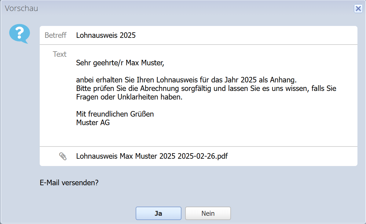 Vorschau der E-Mail mit Lohnabrechnung als Anhang.